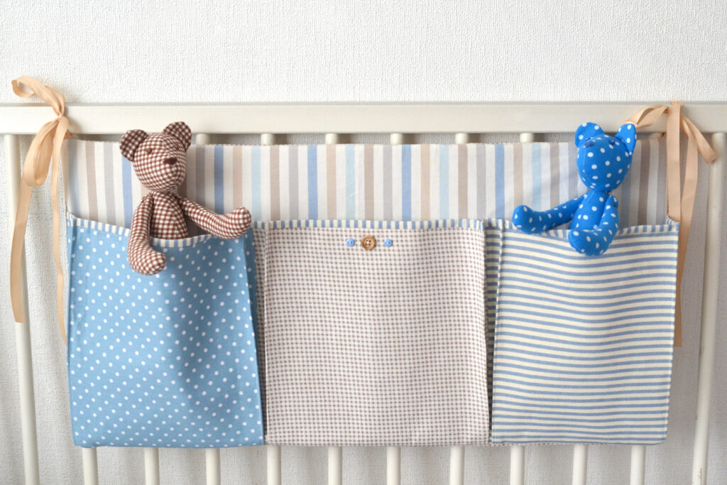 壁に吊り下げたウォールポケットに上から順に